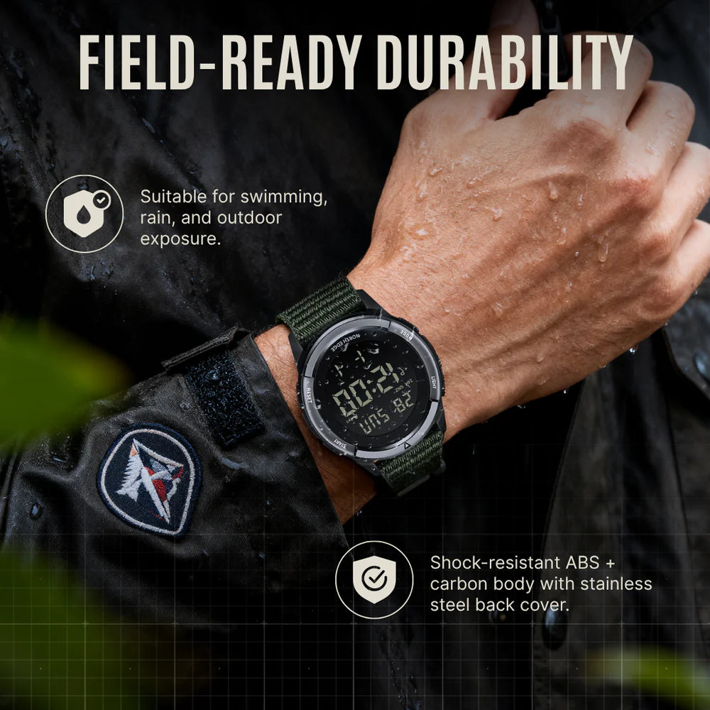 Rated 5 ATM, this watch is designed to operate through heavy rain, river crossings, and open-water training. When conditions are relentless and reliability is mission-critical, Ironway’s waterproof build maintains precision regardless of the terrain.